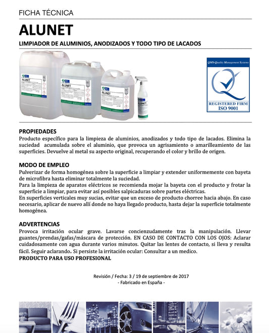 ALUNET - Limpiador de aluminios, anonizados y todo tipo de lacados.
