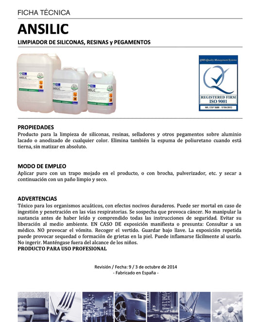 ANSILIC - Eliminador de resinas, pegamentos y siliconas