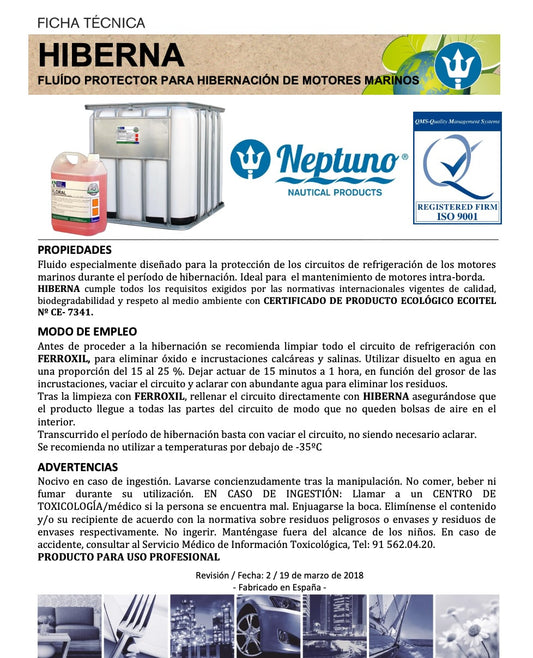 HIBERNA - Fluido protector para hibernación de motores marinos