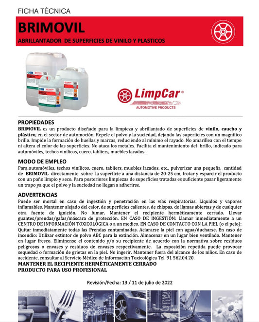 BRIMOVIL - Abrillantador superficies vinilo y plasticos